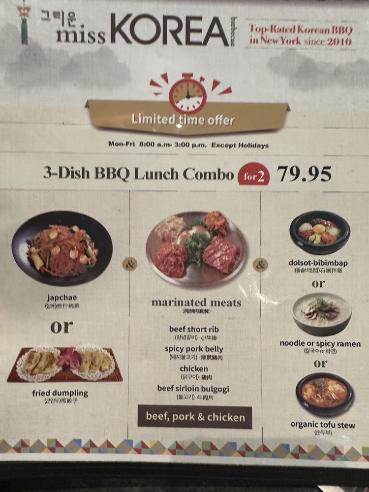 Step into the flavorful world of Miss KOREA BBQ, a Korean barbecue haven located in New York City. This vibrant restaurant offers a multitude of amenities, from vegan and vegetarian options to outdoor seating and a full bar. Their menu boasts delectable dishes like barbecue short ribs and marinated pork short ribs, leaving customers raving about the impeccable service and lively atmosphere. The staff, particularly Catherine, goes above and beyond to ensure a memorable dining experience, offering tips on pairings and even assisting in the cooking process. Although slightly pricier, the quality and taste of the food make it worth every penny. Miss KOREA BBQ is the perfect spot for late-night munchies and drinks, with its unique offerings and attentive staff elevating the overall dining experience. A must-visit for Korean cuisine enthusiasts looking for an authentic and enjoyable meal.